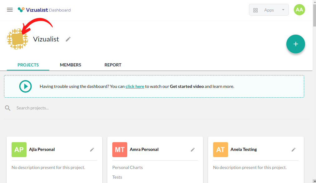 On the top left side of the dashboard, you will see the menu icon. This menu represents the list of all organizations that you are part of. You can switch between them by clicking on the organization you want.