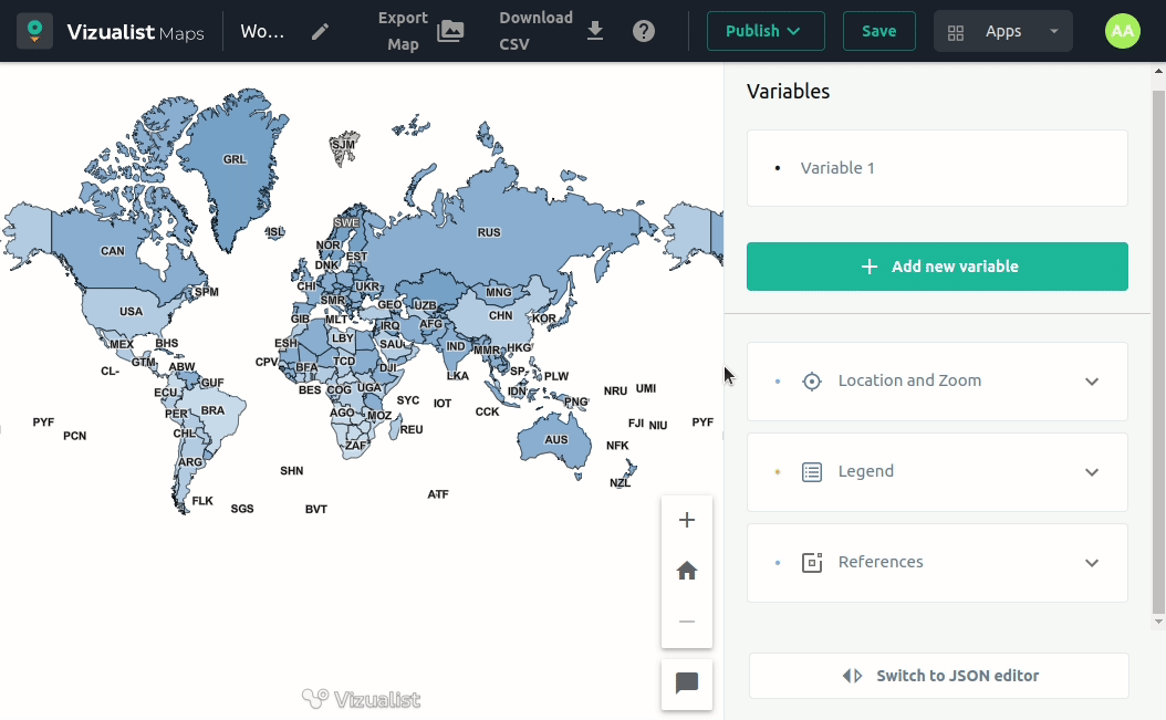 Before you enable legend you need to set up coloring rules. Find coloring rules by clicking on the variable you want to edit. If there are no coloring rules legend won’t be visible.