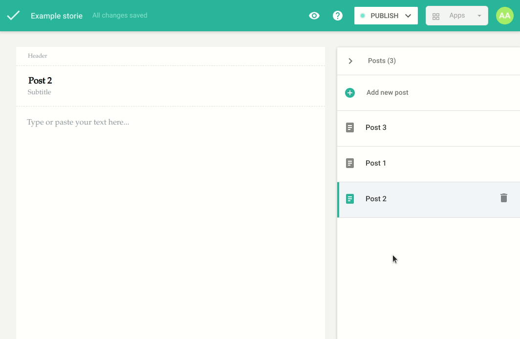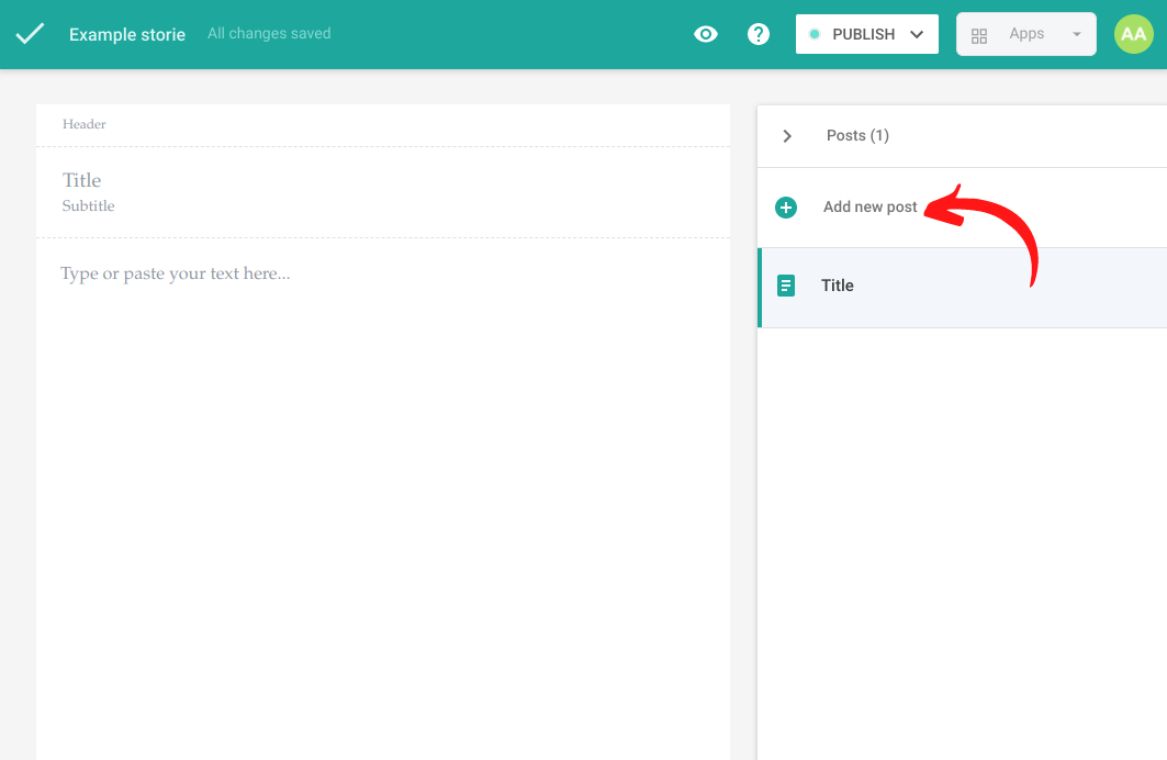 On the right side there is a posts list. To add your new post simply click on the Add new post button.