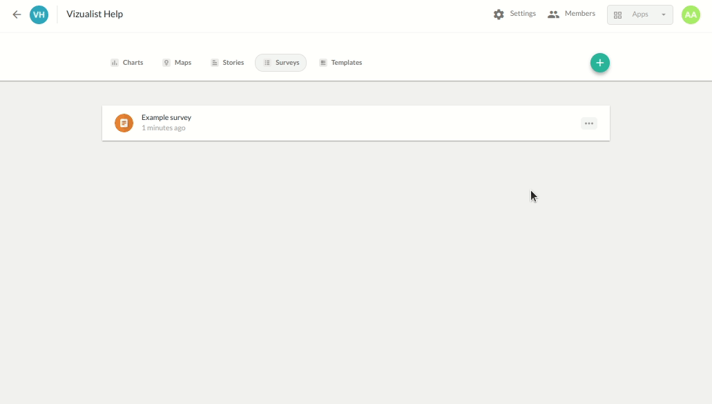 When you just log in to the Vizualist dashboard, you get an overview of all your projects and surveys saved in projects you're a member of.