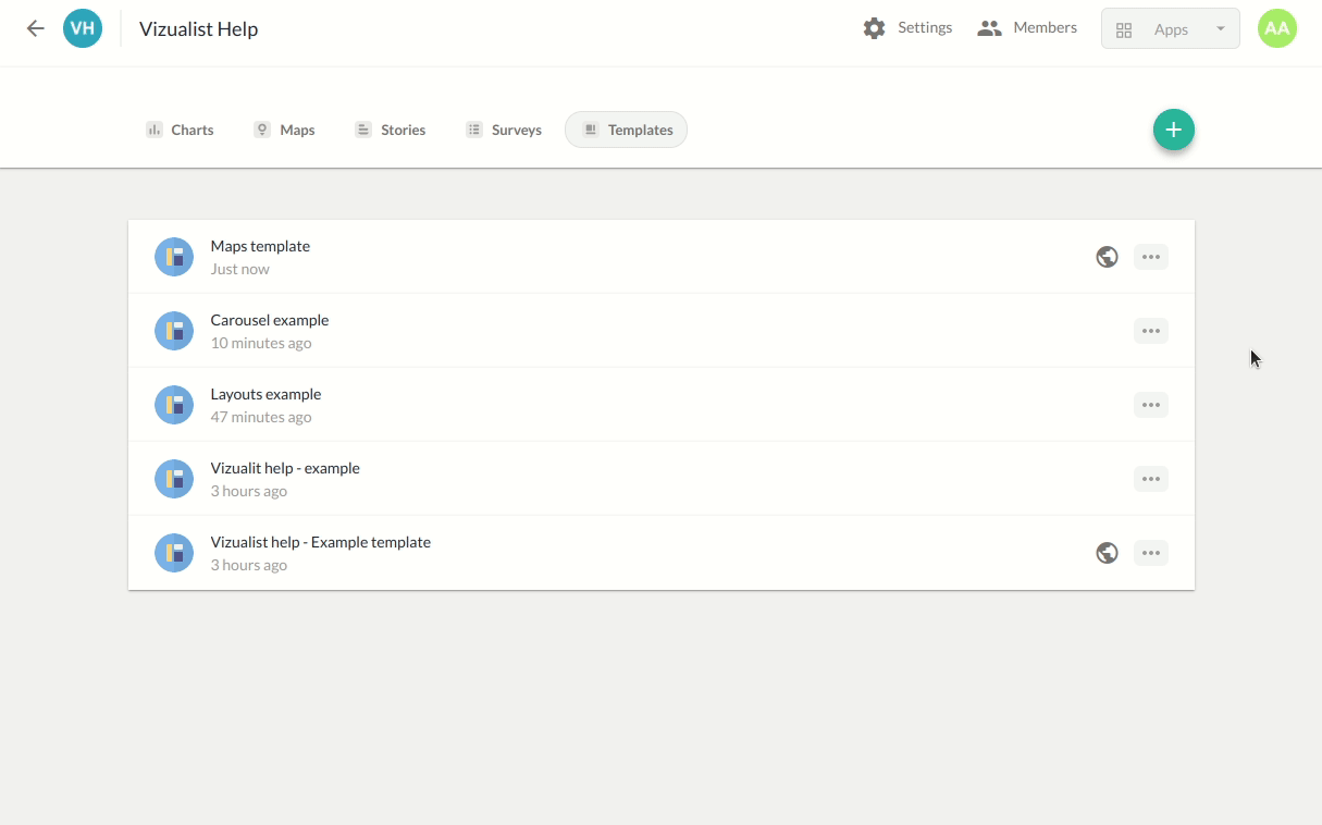 When you first log in to the Vizualist dashboard, you get an overview of all your templates saved in projects you're a member of.