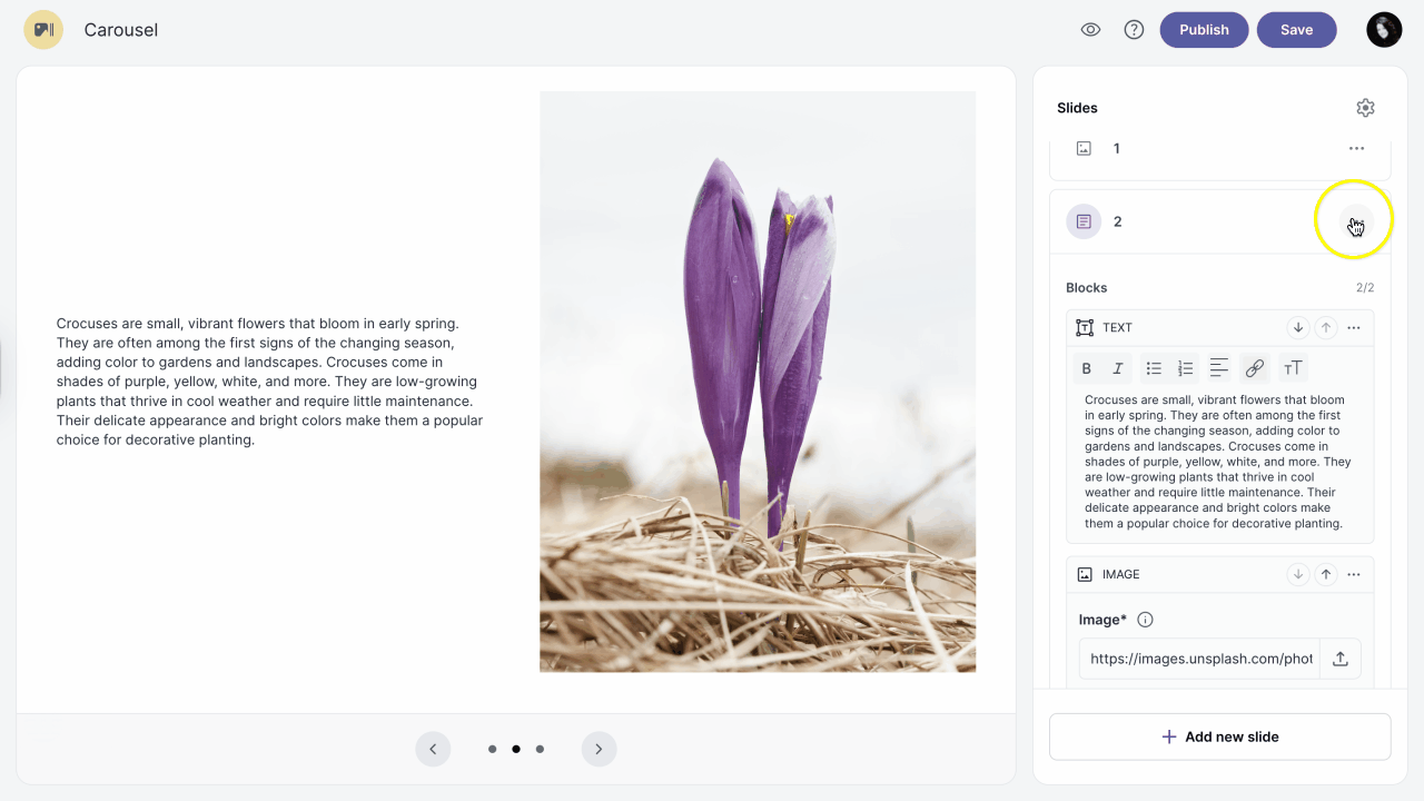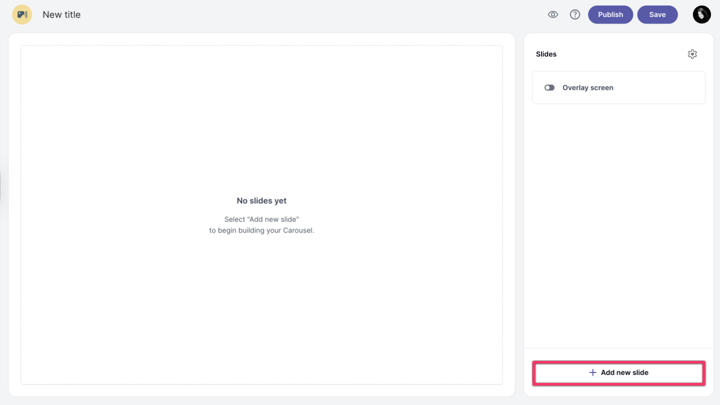 To add a new slide click on the Add slide button at the bottom of the slides panel.