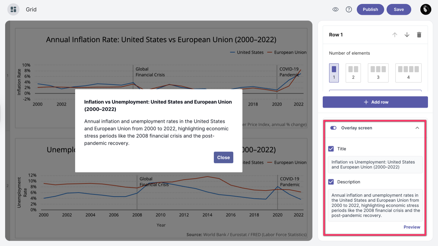 To add an overlay screen, enable the Overlay screen option.
