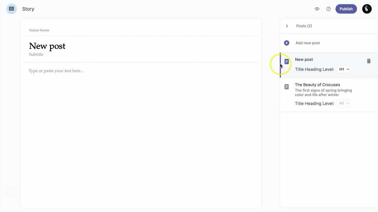Change the position of post/s within your story by dragging the post to its position.
