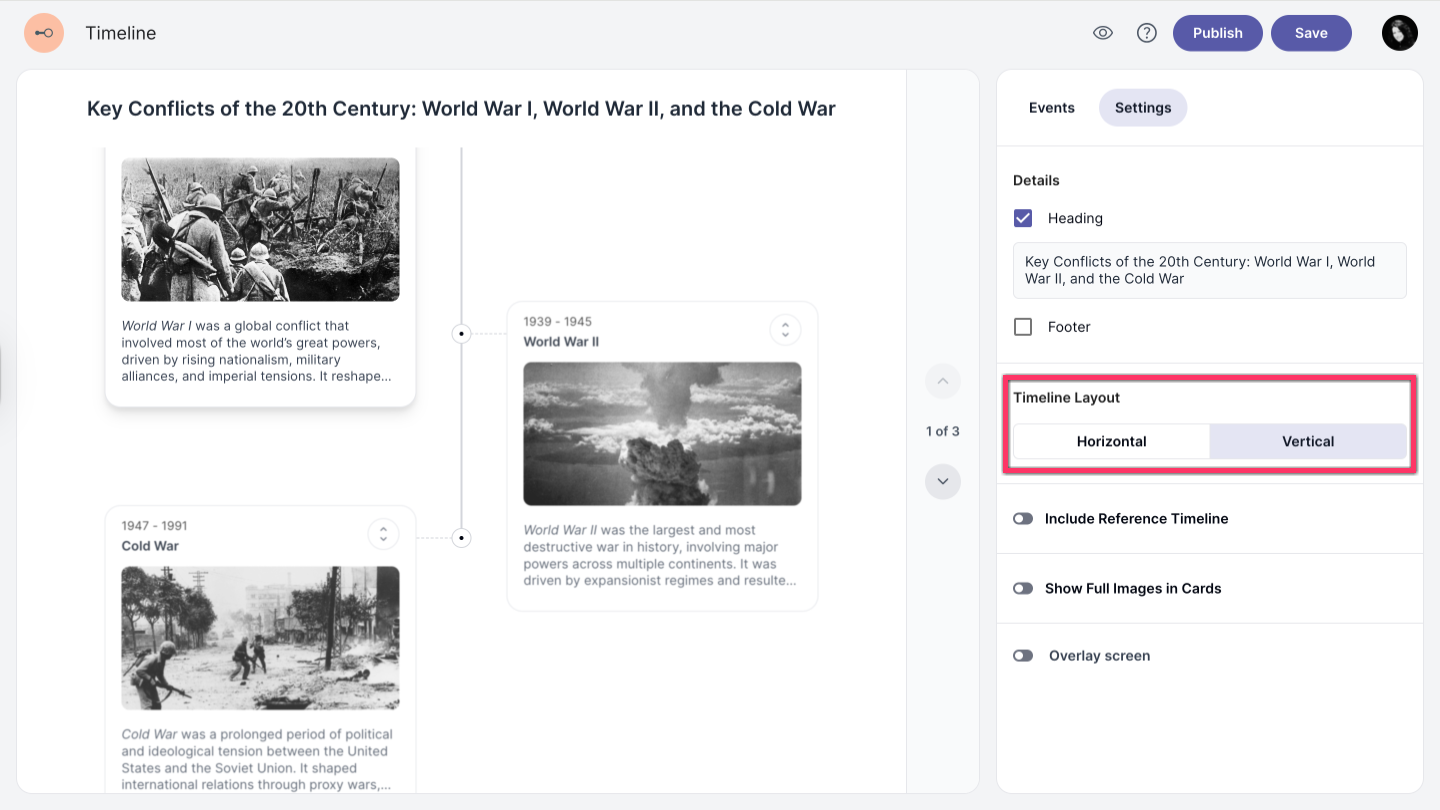 Select either a horizontal or vertical layout depending on how you want your timeline to be displayed.
